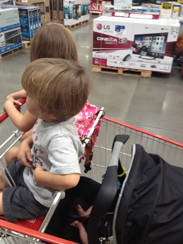 I have yet to figure out the best way to load and unload 3 kids into the car, so I’m still avoiding errands at this point. We did walk to Target the other day and found it was way easier than hauling everyone in the car. Besides, I can fit more stuff in my stroller basket then I can in my kid filled cart.