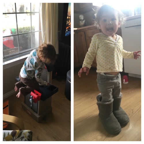 And Ruby is still constantly getting into everything, climbing on everything, tackling everyone, and constantly has a nice bruise on her forehead.